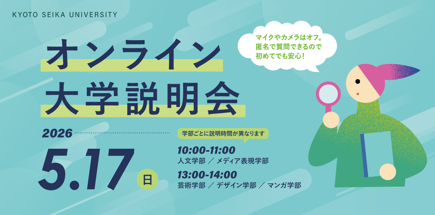 京都精華大学を最近知った人も、過去にオープンキャンパスに来たことがある人も、大学について詳しくなれる説明会を開催します。以下の説明会から、興味がある回を選んで、申し込みをしてください。