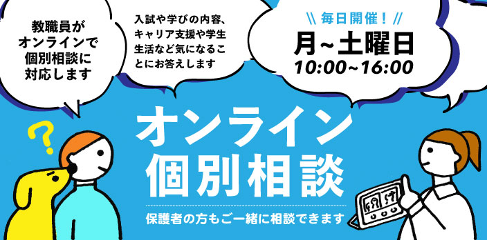「大学でどんな分野を学ぼうかな?」「受験の準備は何をすればいい?」など、いろんな「?」に答えるオンライン説明会を開催します。ご自宅で、スマートフォンやパソコンから視聴可能です。