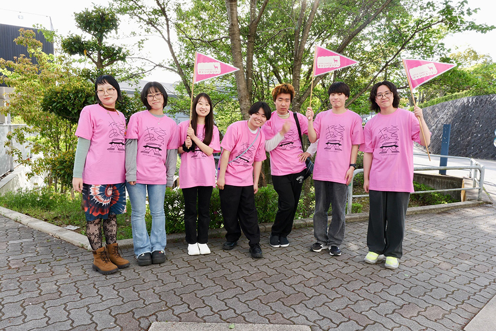 毎回人気のキャンパスツアー。約200,000㎡の広いキャンパスと充実した設備を、在学生がご案内します。