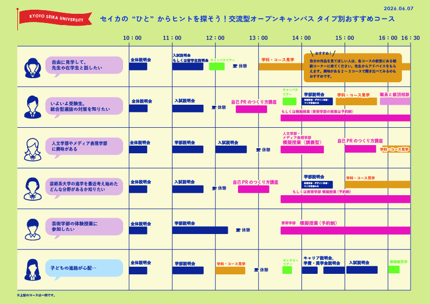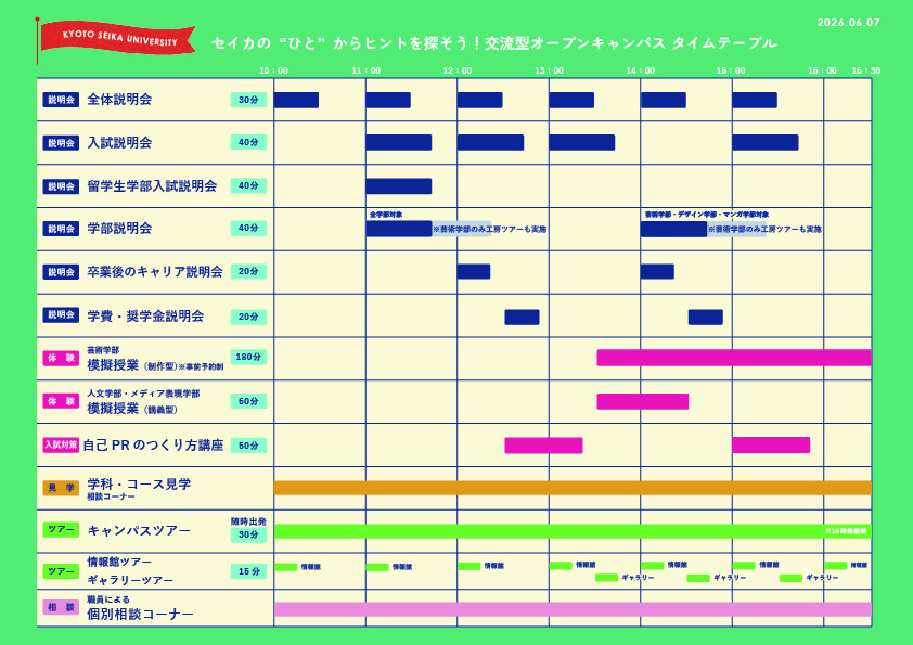 [開催時間] 11:00(全学部)/ 14:00(芸術学部・デザイン学部・マンガ学部のみ)