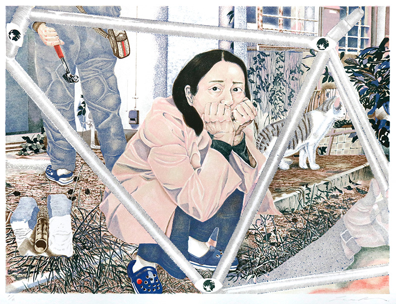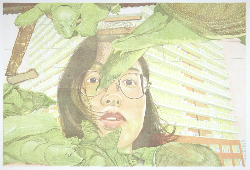 マス・コミュニケーションと版画(リトグラフ)の関係を探りながら作品をつくっています。