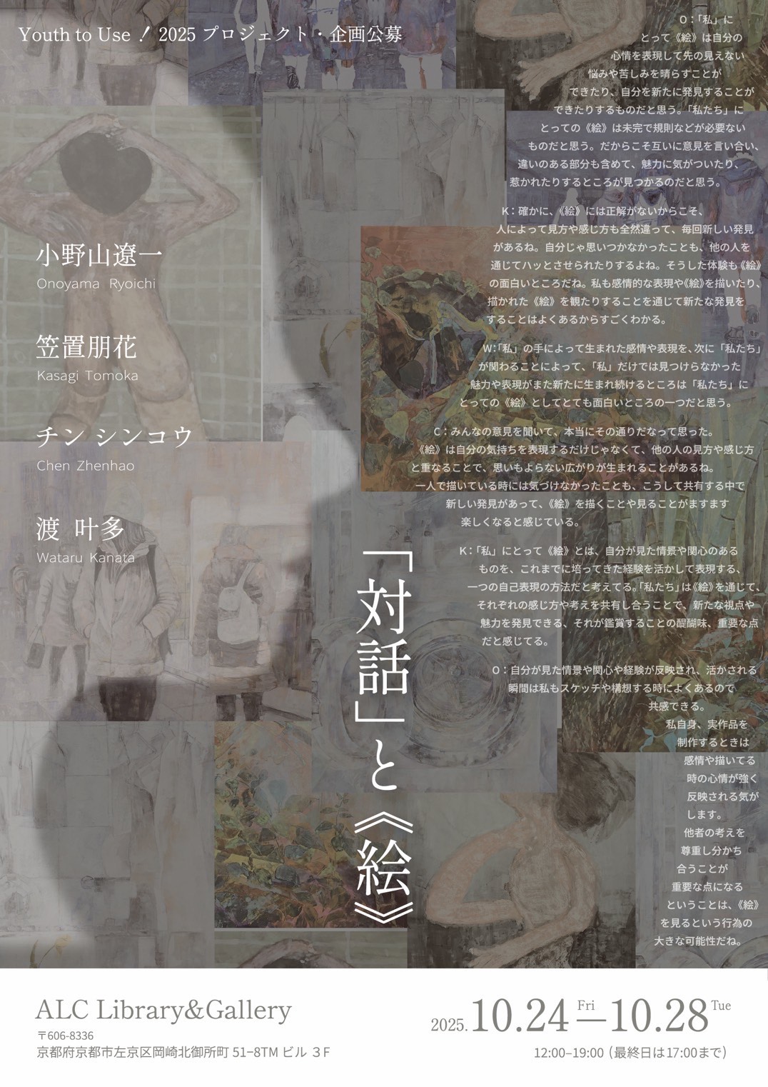 本展覧会は、新型コロナウイルス感染症の影響で交流や作品発表の機会を十分に得られなかった学生たちに、展覧会を開催する場を提供することを目的に、アーティスト有志が2022年に立ち上げたプロジェクト「Youth to Use!」の一環として企画されました。