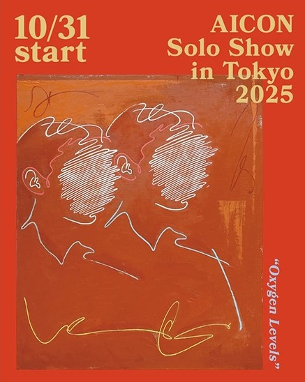 AICONは京都の美術大学で西洋画を学び、そこから印象的なラインとミニマルな画面構成を特徴とする現在の作品形態へと変化してきた。古典的な肖像画に着想を得ながら、その形式を徹底して抽出・再構成することで、大胆さを併せ持つ独自の造形表現を展開している。
