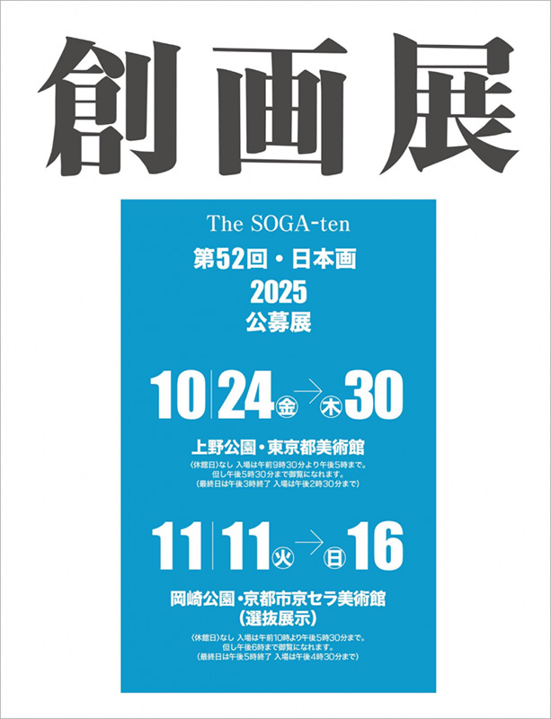 日本画専攻教員や非常勤講師をはじめとする多数の関係者が「第52回 創画展」にて入選。展覧会が開催中です。