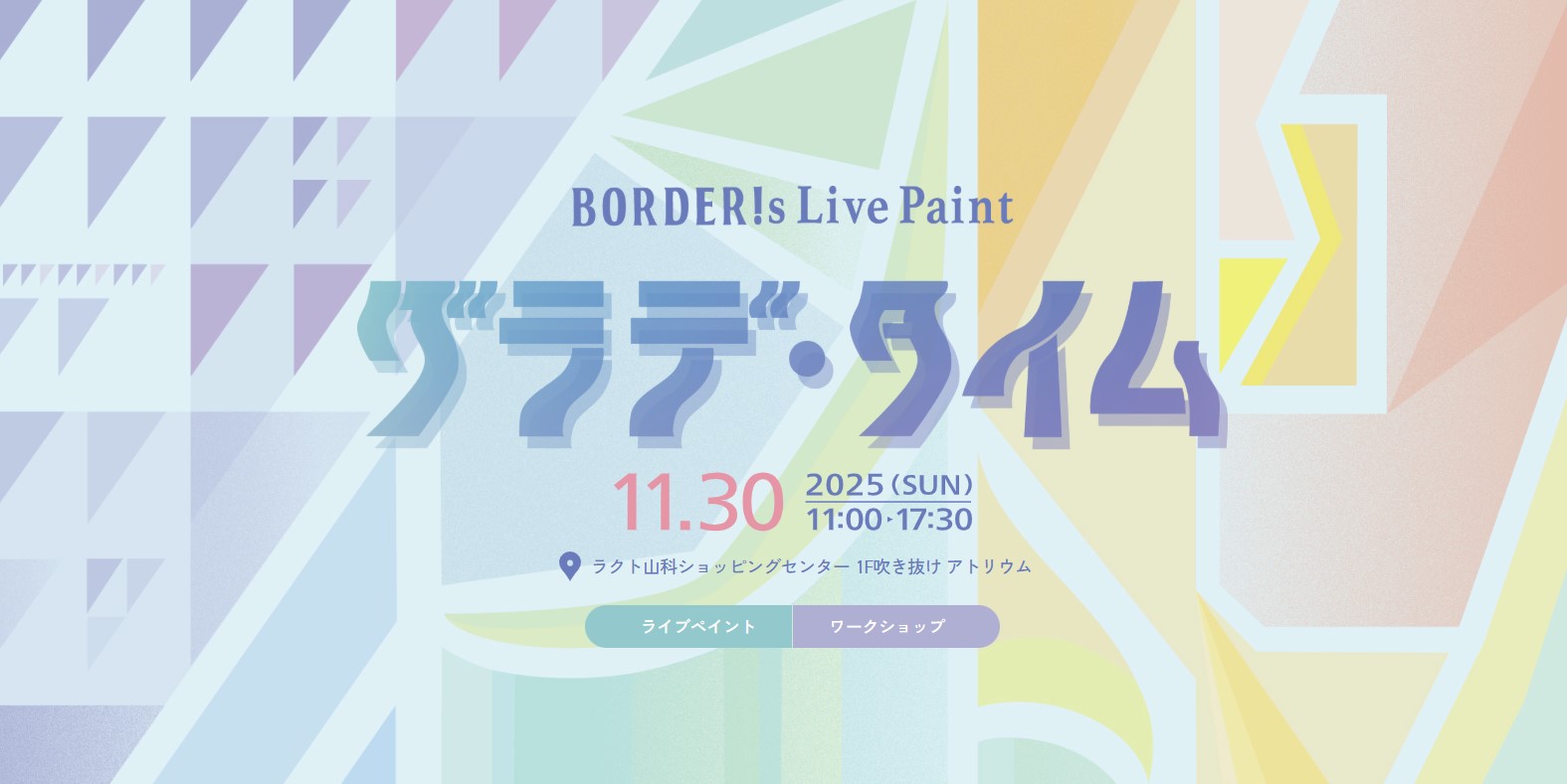 芸術学部洋画専攻4年生の中村琴梨さん、松尾風花さんが参加するイベント「BORDER!s Live Paint グラデ・タイム」が、京都市山科区のラクト山科ショッピングセンターで開催されます。