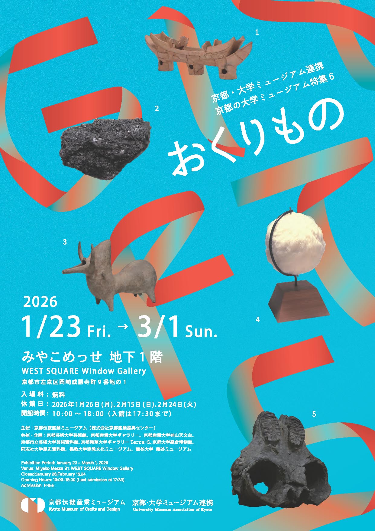 共催・企画:京都芸術大学芸術館、京都産業大学ギャラリー、京都産業大学神山天文台、京都市立芸術大学芸術資料館、京都精華大学ギャラリーTerra-S、京都大学総合博物館、同志社大学歴史資料館、佛教大学宗教文化ミュージアム、龍谷大学 龍谷ミュージアム、京都・大学ミュージアム連携