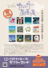 12人の絵本作家によるカレンダーの原画展が、全国で開催されます。10周年を記念して、それぞれの会場で絵本作家をゲストとしてお招きするスペシャルイベントが予定されています。