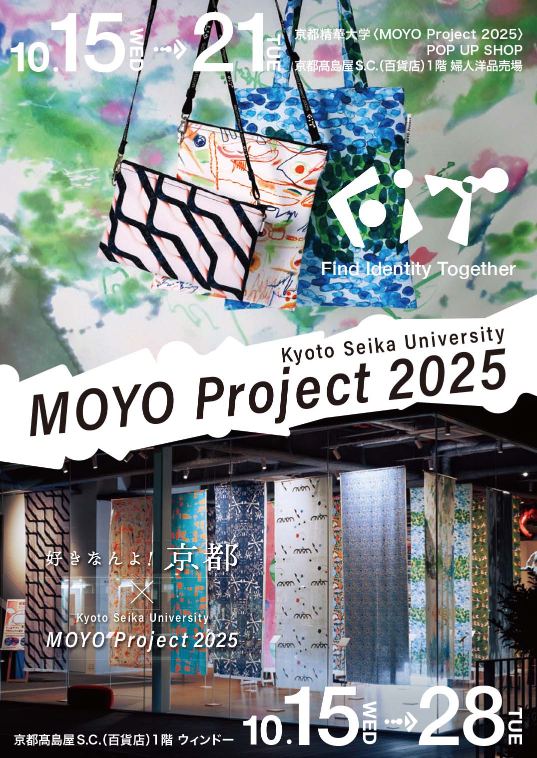 デザイン学部ビジュアルデザイン学科「MOYO Project 2025」が、京都髙島屋S.C.で開催される「好きなんよ!京都」とコラボレーションし、学生たちが制作した模様をプリントしたトートバックやサコッシュを販売します。