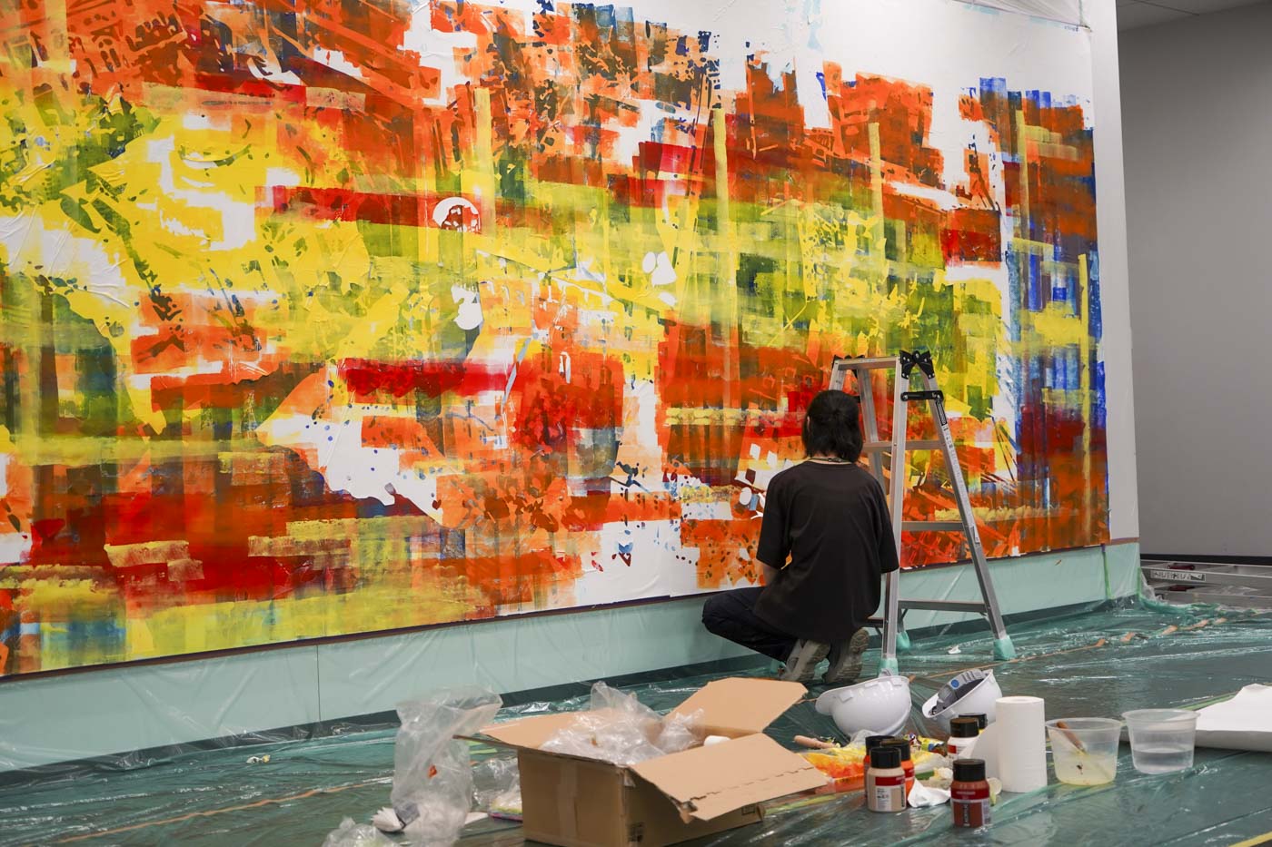 中村さんは豊洲オフィス担当となり、わずか4日間(1日の制作時間は11:00~19:00)で壁画を完成させました。