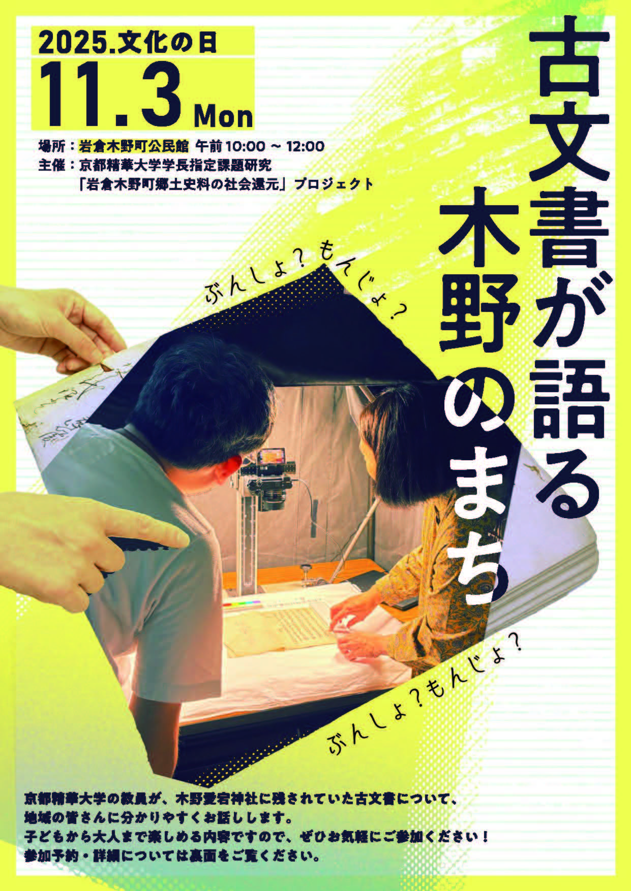 主催:京都精華大学学長指定課題研究「岩倉木野町郷土史料の社会還元」プロジェクト