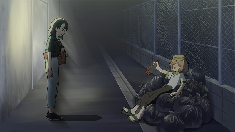 短編アニメーション作品『ターン・スキップ・ターン』は、雨樋畦蛙さんと五十嵐菜那さんが監督・演出を務め、アニメーションコースやキャラクターデザインコースの在学生らで構成されているターン・スキップ・ターン制作委員会が制作をした、本学入学後に取り組んだチームでの自主制作作品です。公式サイトでは、受賞コメントや審査員からの講評が公開されています。