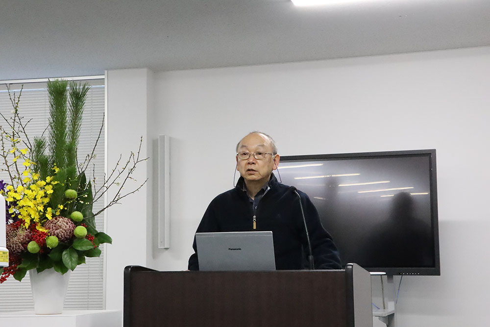 本日はお昼休みの時間を利用し、対面とオンラインのハイブリッド形式で教職員の仕事始め式が開かれ、吉村和真理事長、澤田昌人学長が新年の挨拶を行いました。